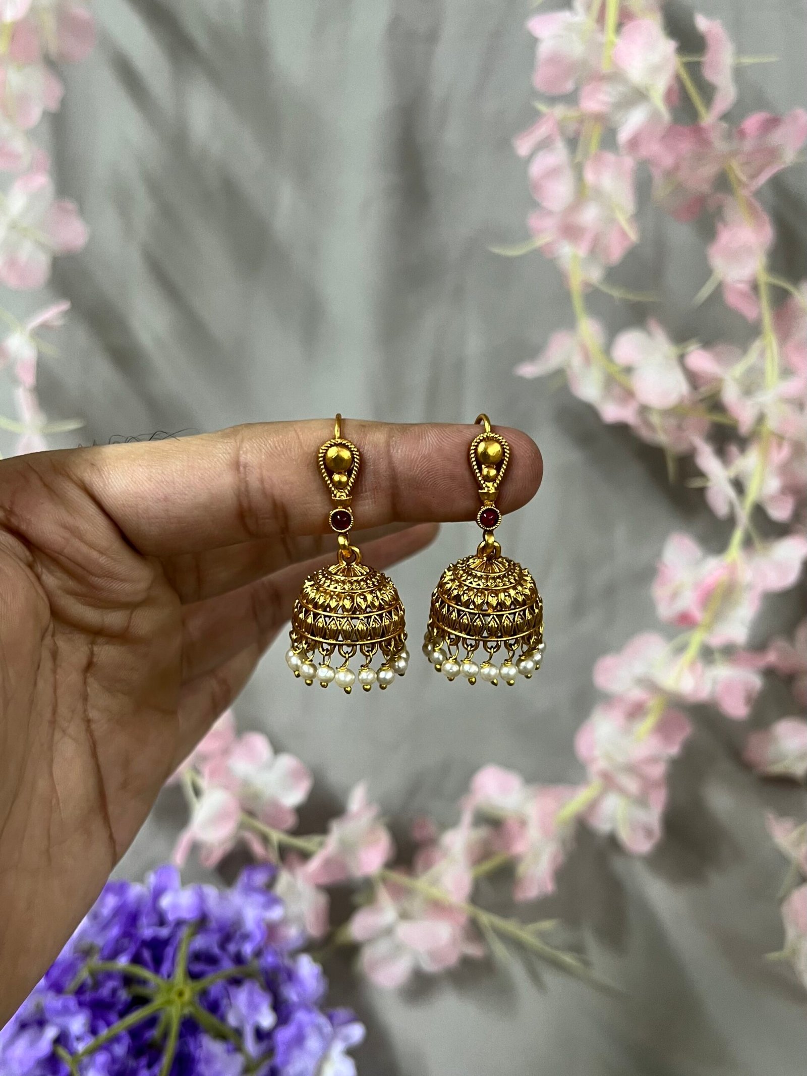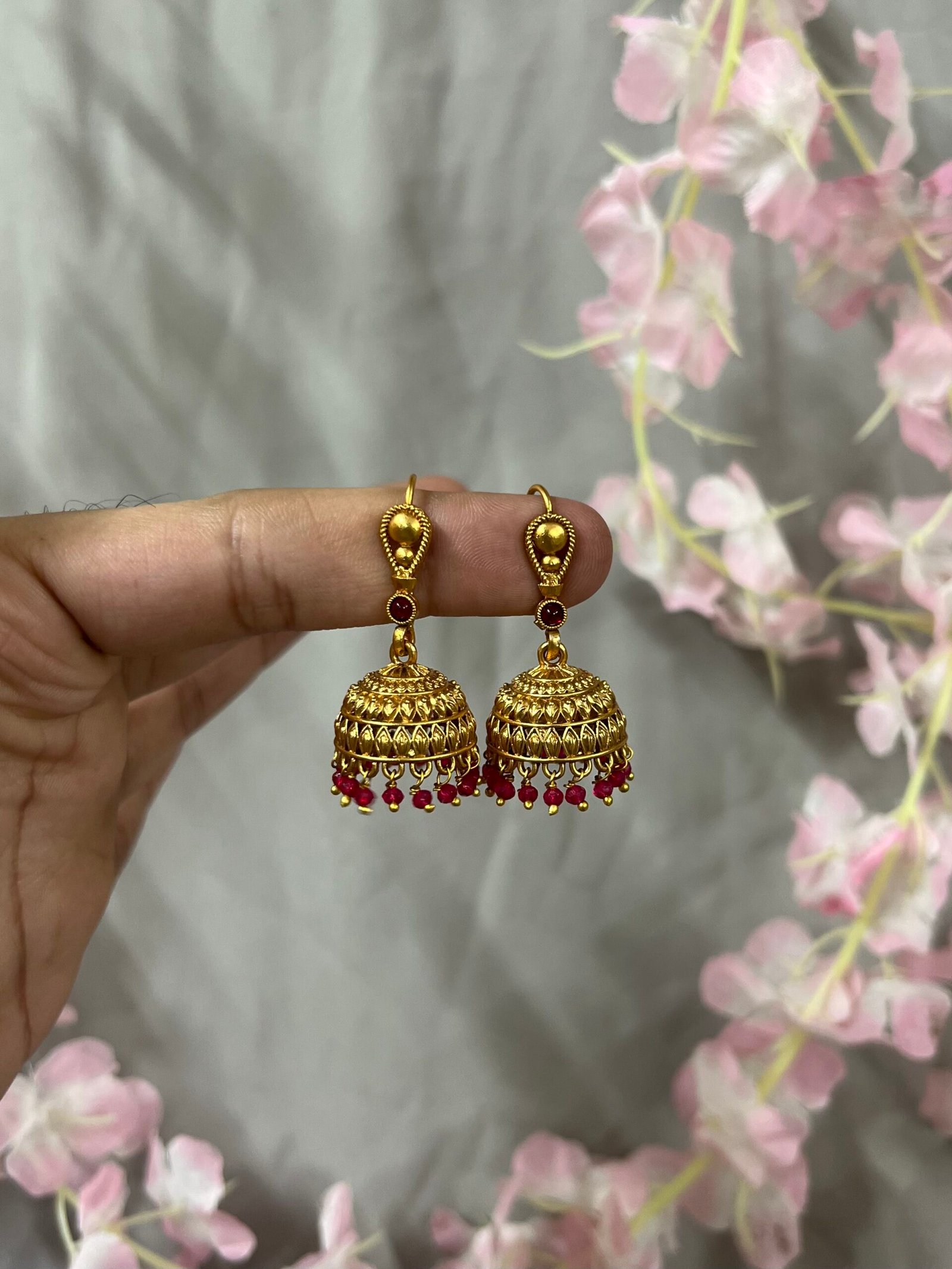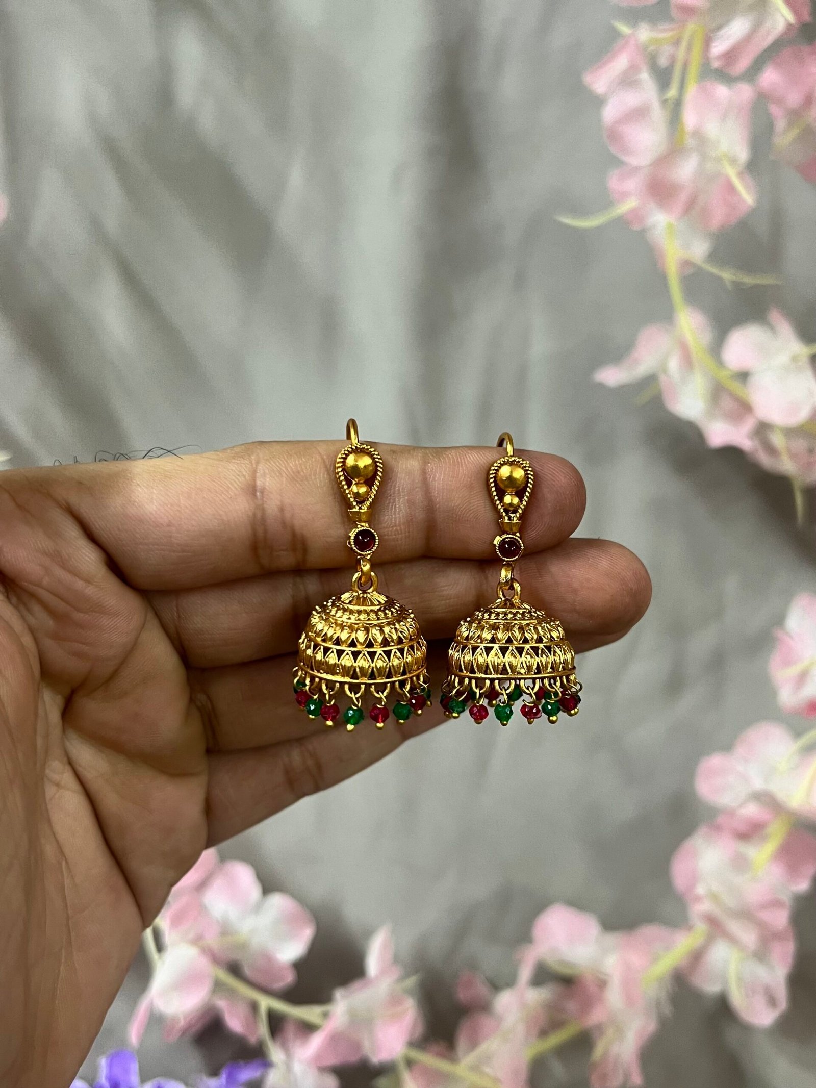If you’re looking for traditional gold jhumka earrings, antique beaded jhumkas, or simple festive temple earrings, the Aaradhya Jhumkas are a must-have staple for your ethnic jewelry collection.