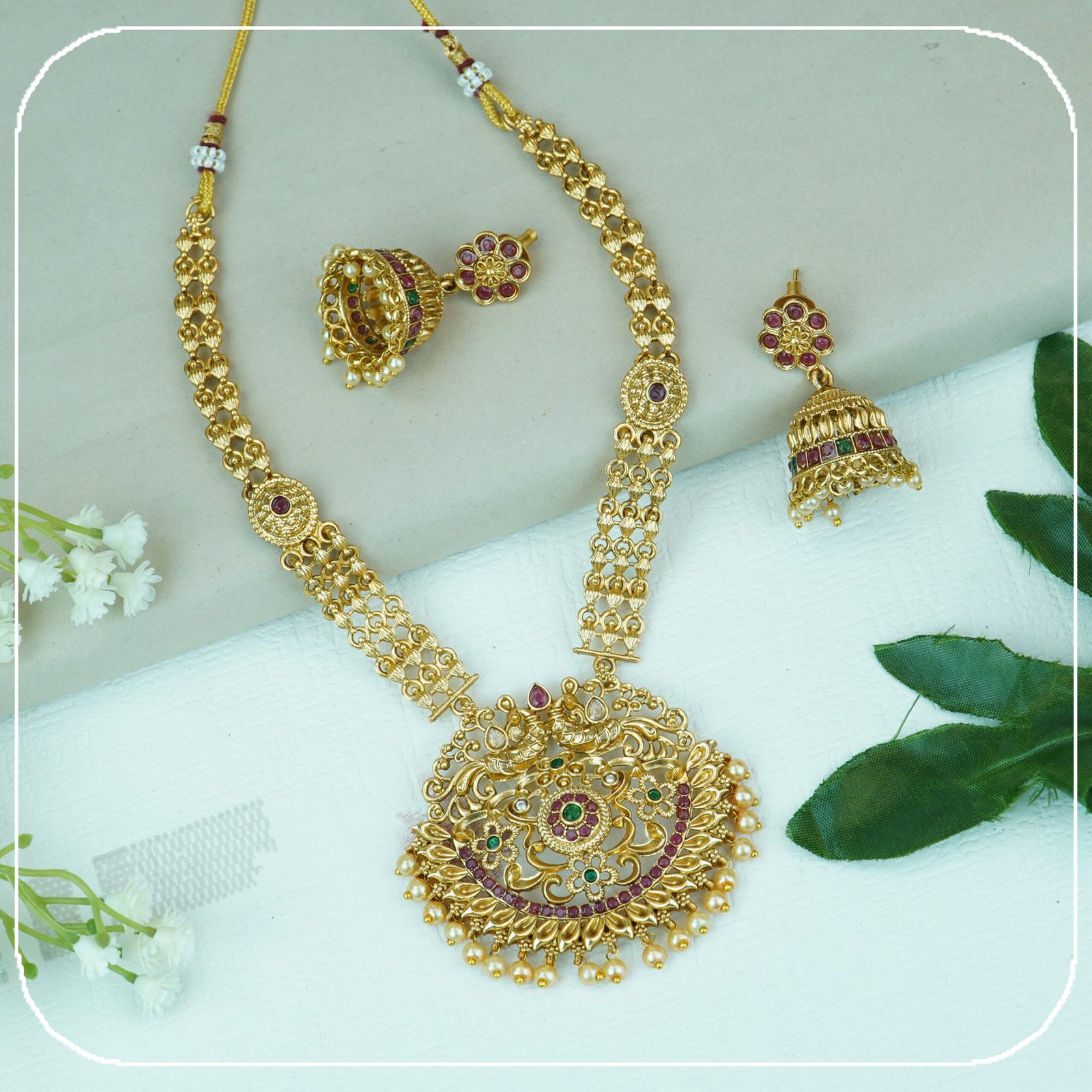 This Lovely Jewellery Set From The House Of Jewels Bhargav Art Has Been Exclusively Designed For You. Any Fabulous Outfit Is Incomplete Without Matching Jewellery. A Woman Is Completely Dressed With Wearing Matching Jewellery. The Best Gift For Someone Special. Its Graceful Design