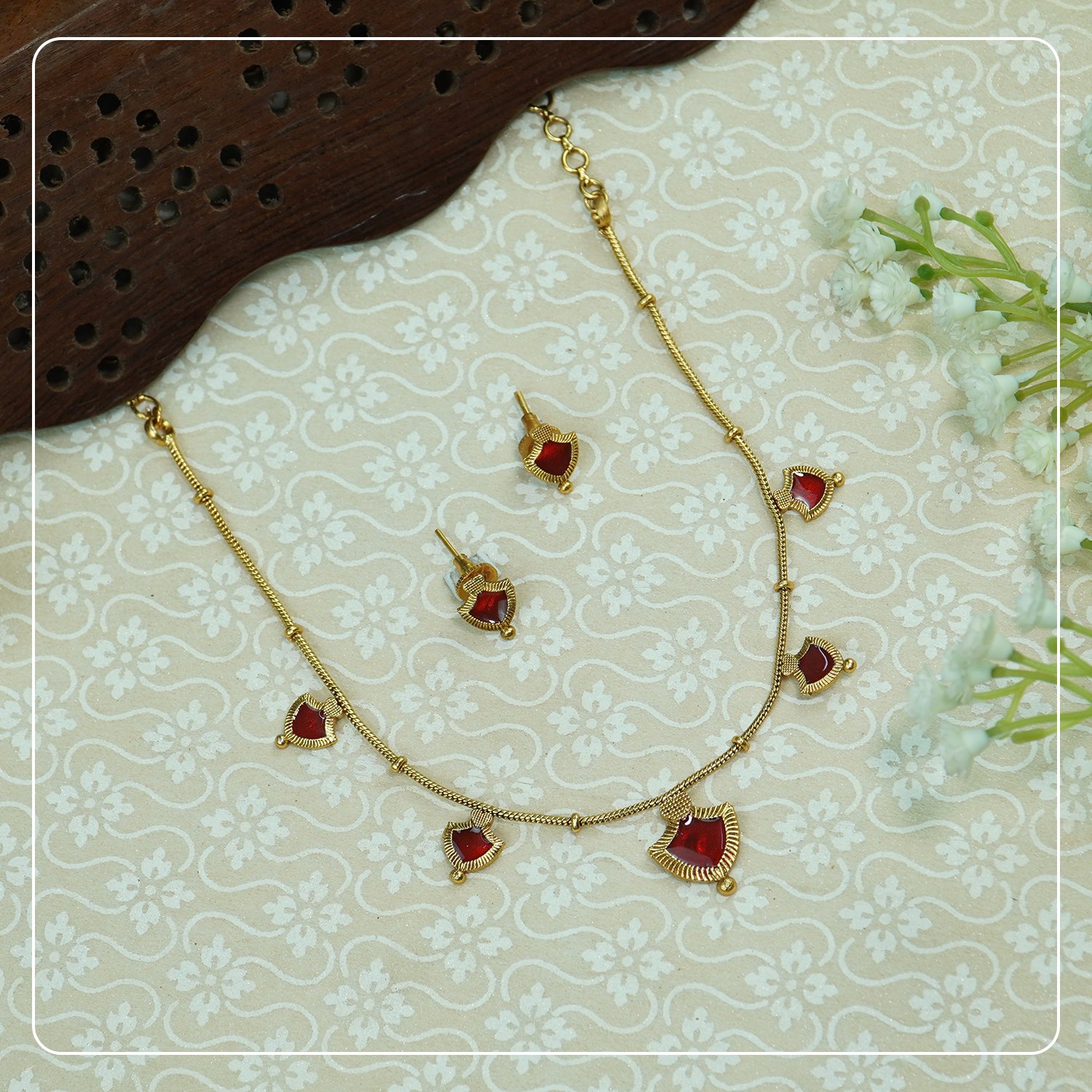 Enhance your elegance with our exquisite Jewellery Set, designed to add a touch of sophistication to any outfit. Crafted with precision and adorned with dazzling stones, this set includes a stunning necklace and matching earrings, perfect for weddings, parties, and festive occasions. The intricate detailing and premium-quality finish make it a timeless addition to your collection, blending traditional charm with a modern appeal. Lightweight and comfortable to wear, this jewellery set is an ideal gift for your loved ones or a treat for yourself. Let your style shine with this captivating piece that complements every look effortlessly!