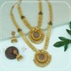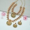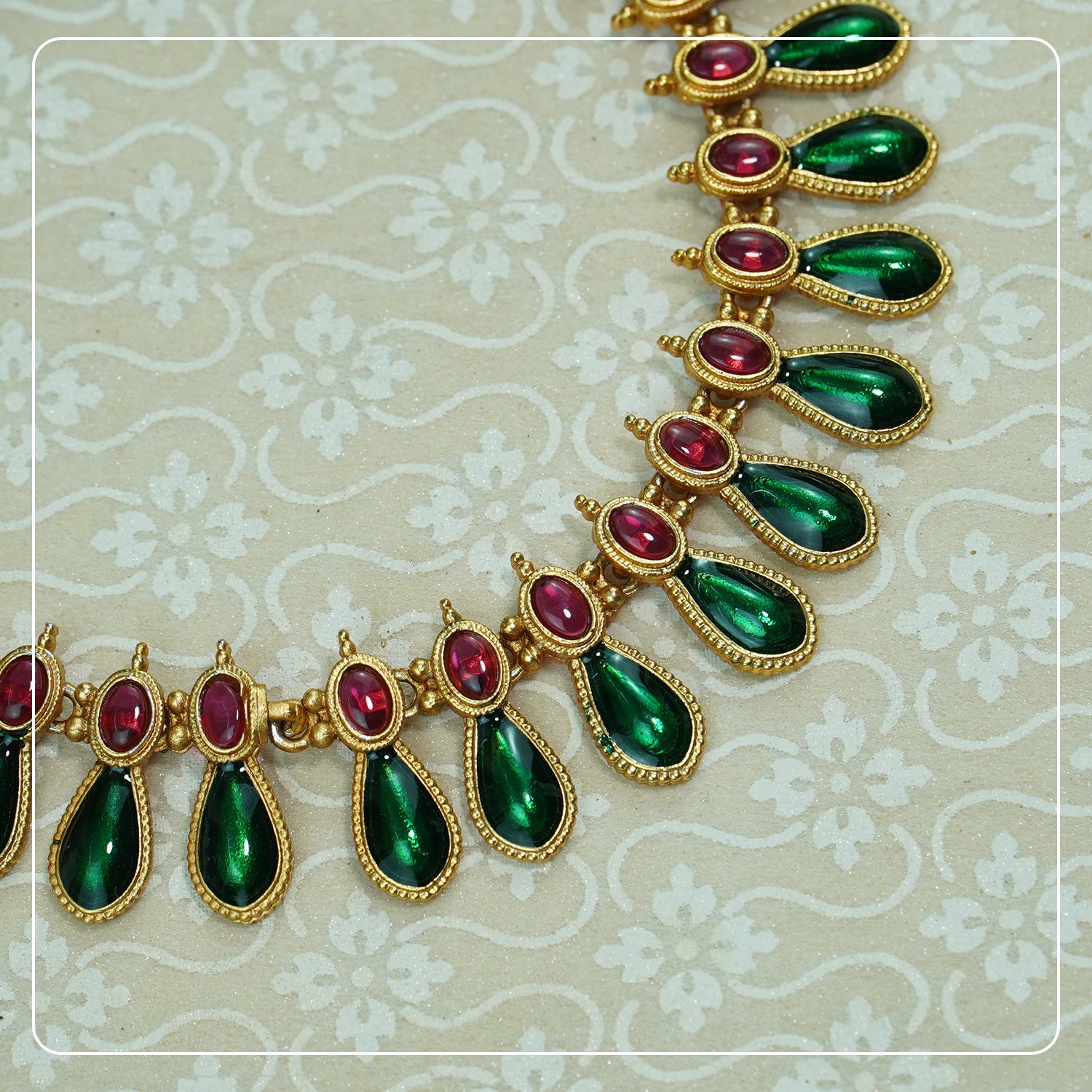 Add glamour to your look with this stunning necklace – the perfect blend of elegance and affordability. Crafted with high-quality materials, this necklace features a stylish design with intricate detailing and a smooth finish. Whether you’re dressing up for a wedding, party, or festive occasion, this lightweight piece sits comfortably around the neck and makes a bold style statement. A pair of matching drop earrings, secured with a post and back closure for a complete traditional look!