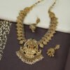 Add glamour to your look with this stunning necklace – the perfect blend of elegance and affordability. Crafted with high-quality materials, this necklace features a stylish design with intricate detailing and a smooth finish. Whether you’re dressing up for a wedding, party, or festive occasion, this lightweight piece sits comfortably around the neck and makes a bold style statement. A pair of matching drop earrings, secured with a post and back closure for a complete traditional look!