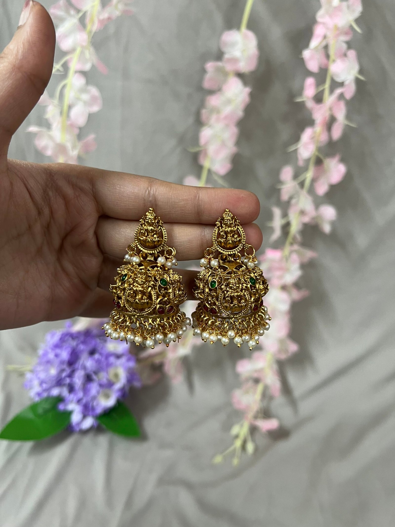 Perfect for pairing with sarees, lehengas, and traditional attire, the Simhavahini jhumkas add a powerful yet graceful statement to bridal, festive, and cultural looks. A timeless piece that celebrates heritage and artistry.